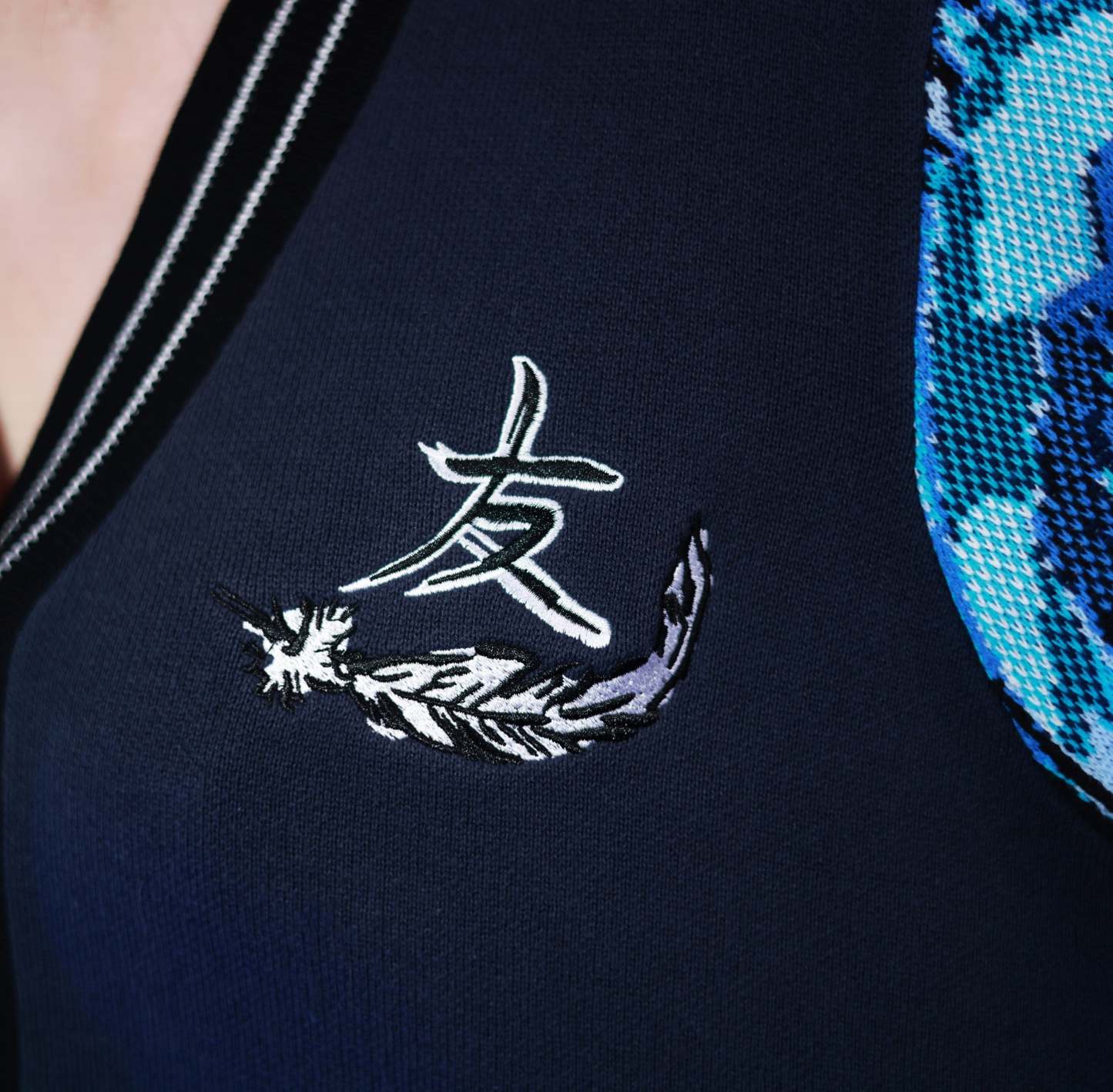 - The Japanese word of the embroidery in the front means "Friend"