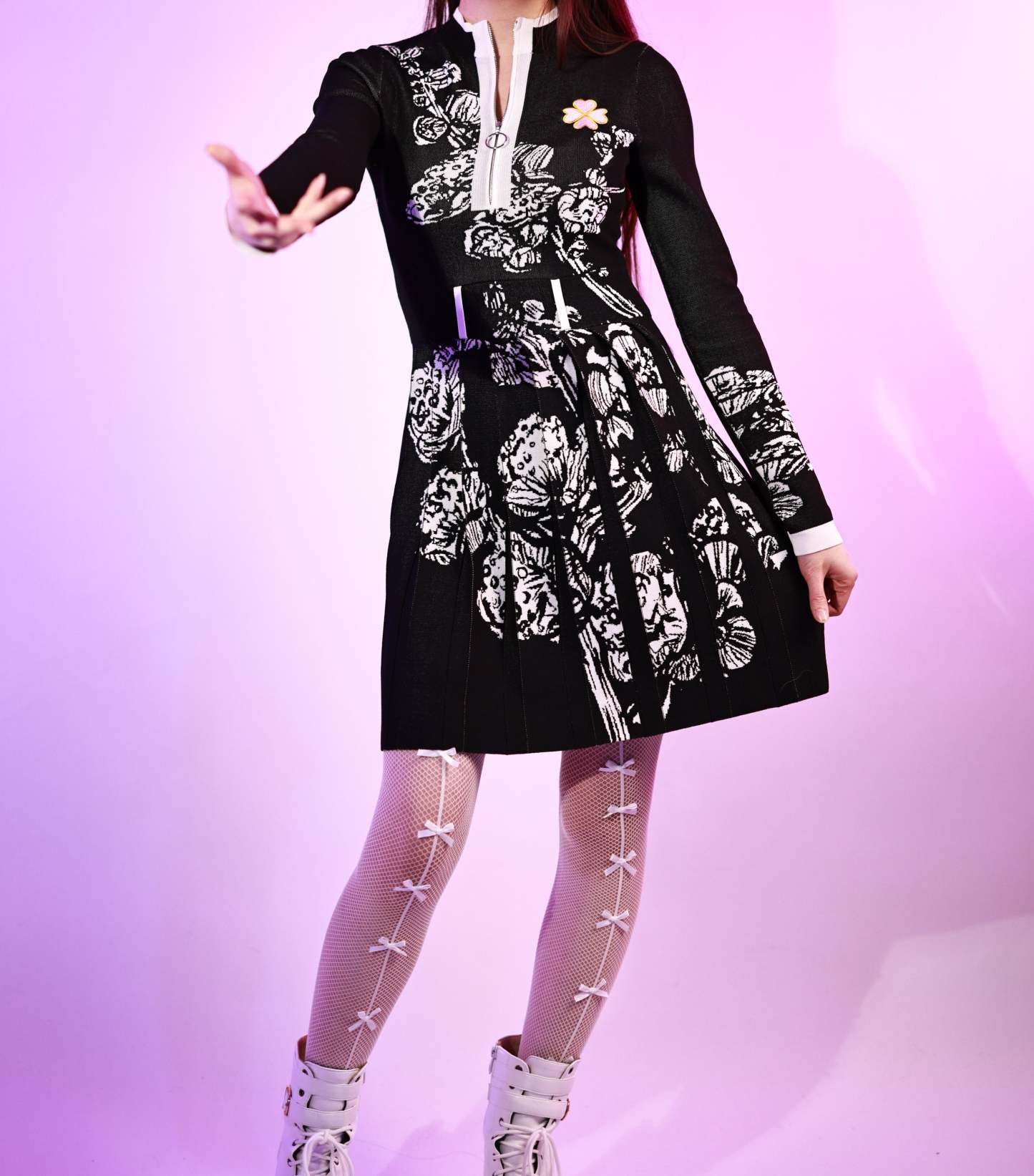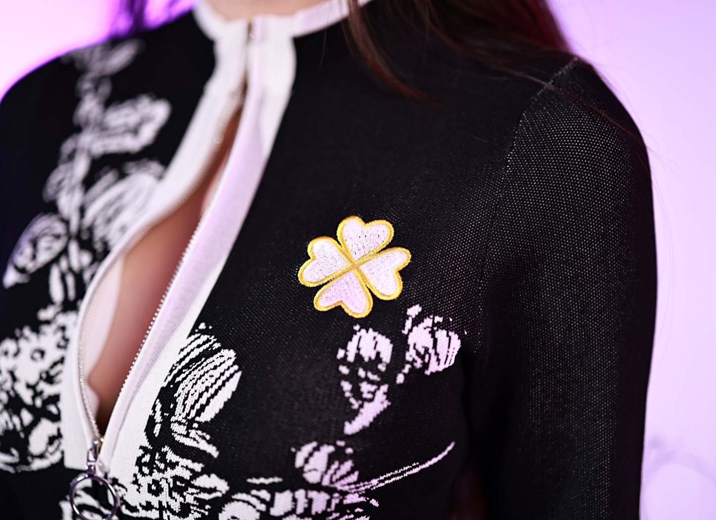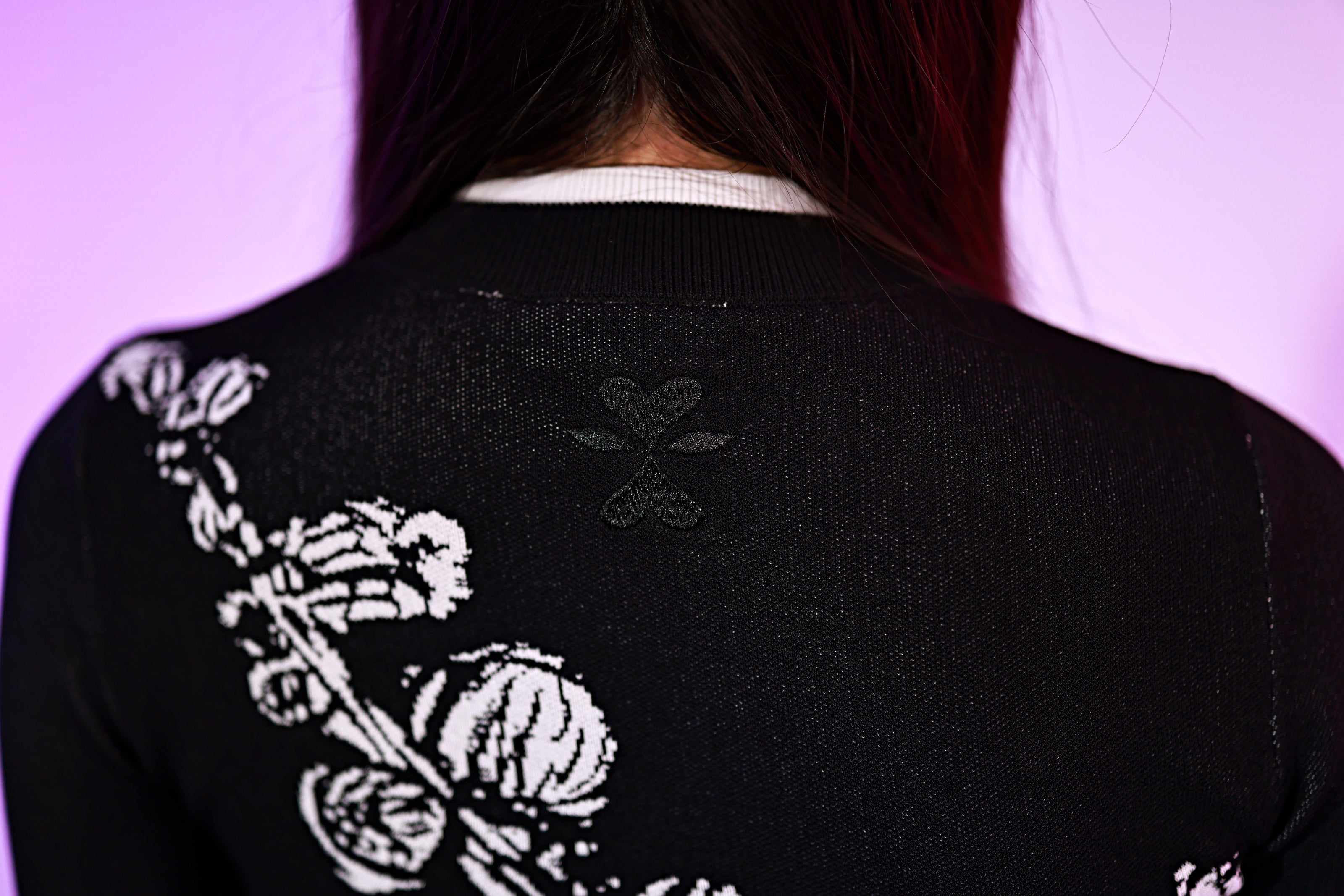 - The sweater also has wisteria jacquard patterns on the sleeves and body