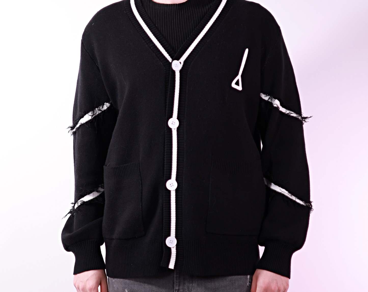 - The sleeves have a textured rip pattern