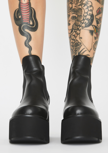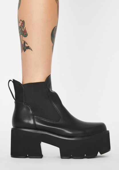 Rougher The Better Platform Boots got ya makin’ major moves, sis! Look hella dope in these vegan leather booties that have treaded platform soles, back pull tabs, N’ elasticized ankles.