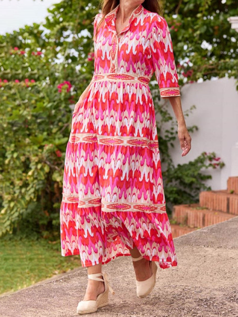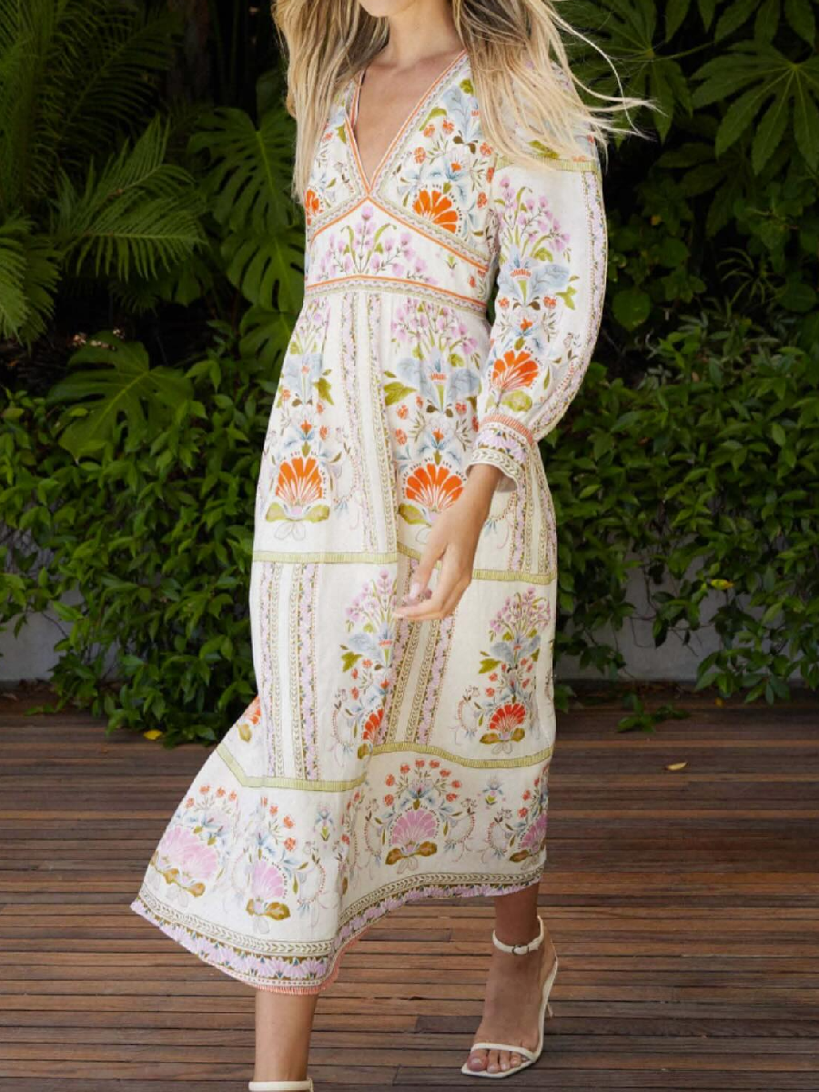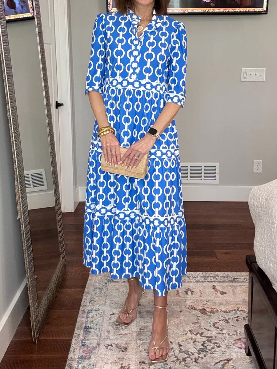 Elegant Printed V-neckline Dress