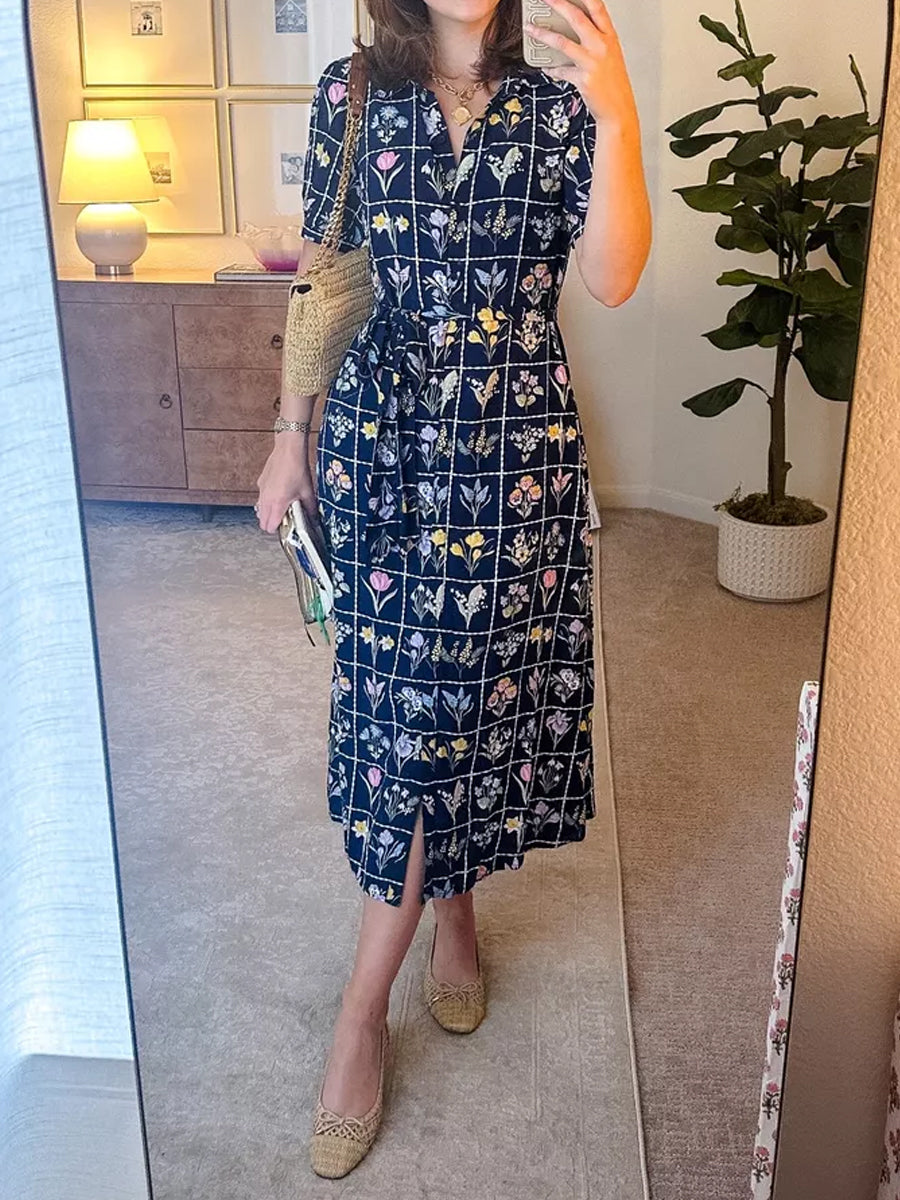Printed Short Sleeve Belted Shirtdress