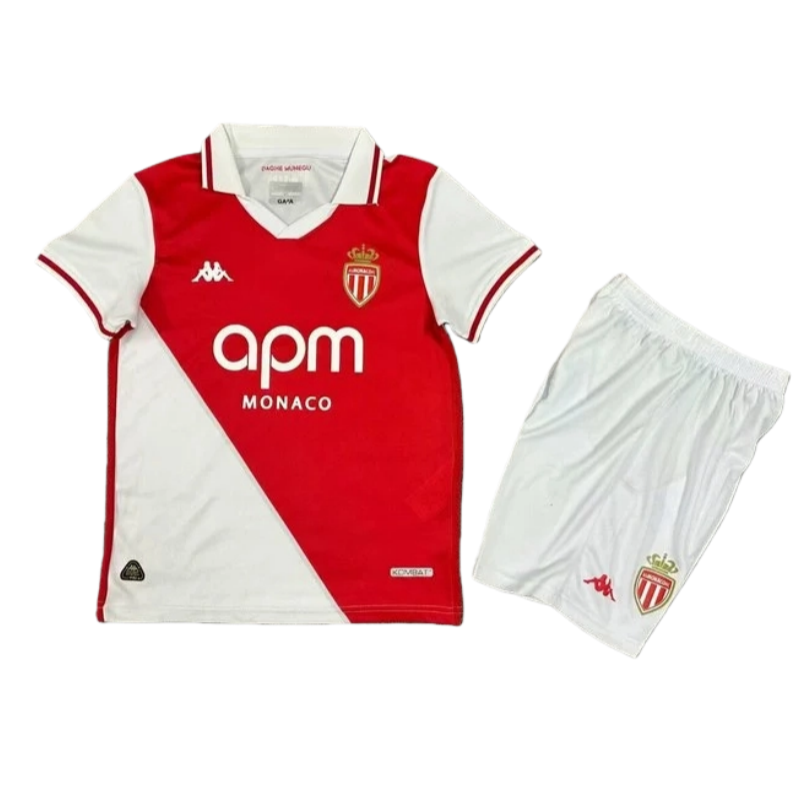 2024-25 AS Monaco Home Kids Soccer jersey Fan version Kit