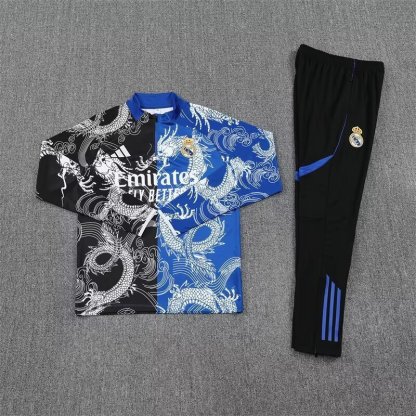 25-26 Real Madrid Black&Blue Dragon Training Kits Long Football Track suits