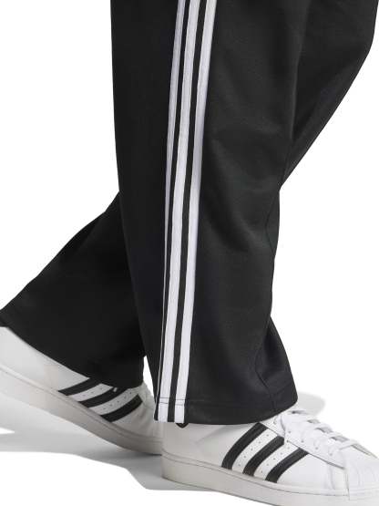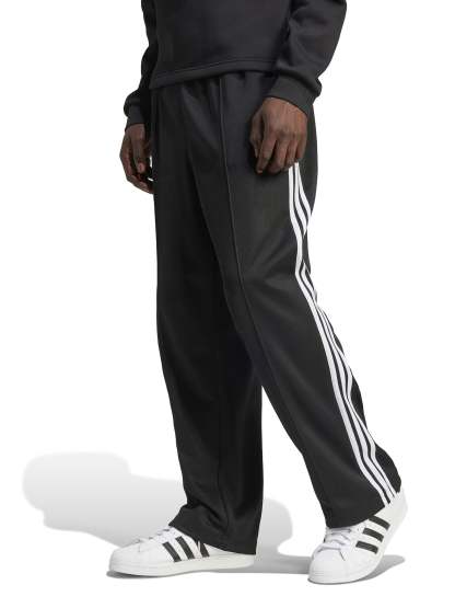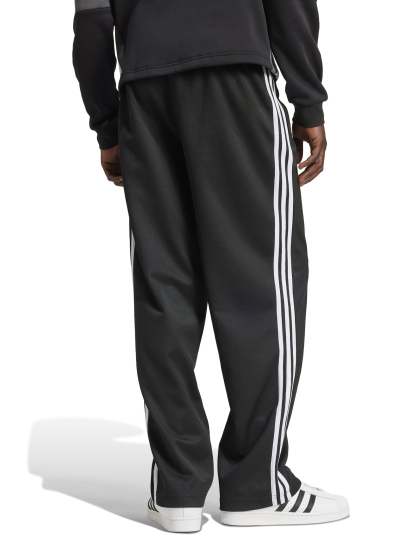 The Baggy Track Pant in Black by Adidas is designed with a baggy fit and elastic waistband. These track pants feature Three Stripes branding along the sides and an embroidered Trefoil logo.