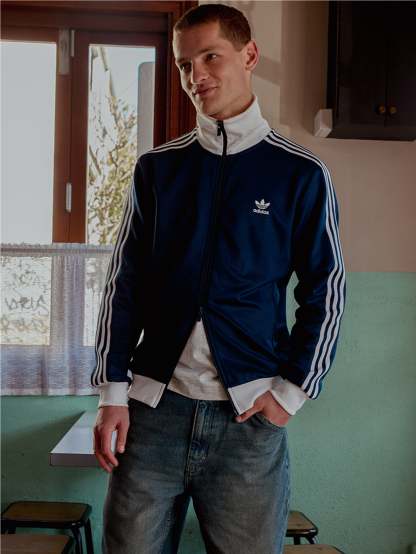 The Classic Track Top from Adidas in Indigo showcases the signature 3-stripes tape along the sleeves and an embroidered Trefoil logo. This track top features a streamlined fit and stand collar.