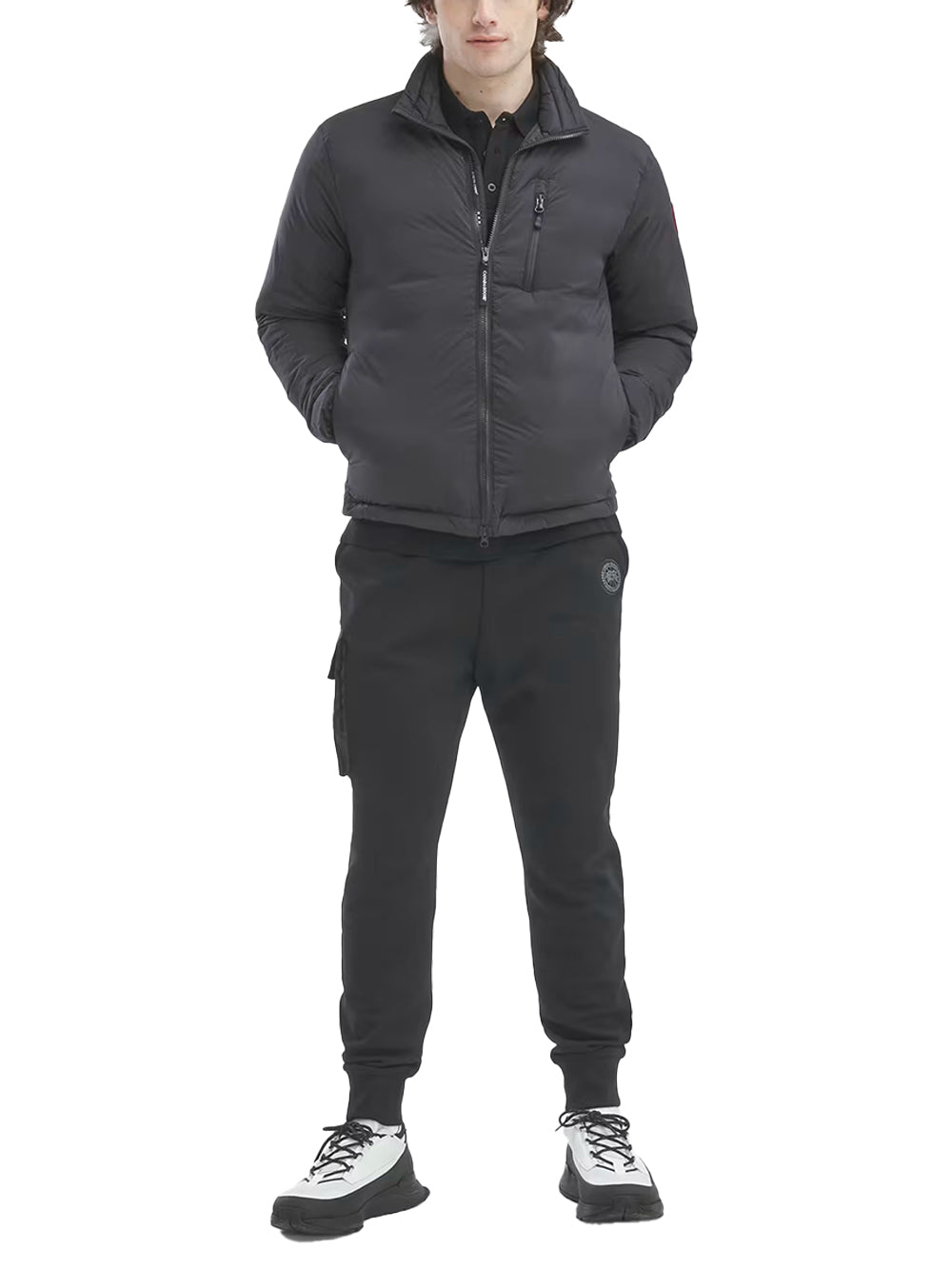 Canada Goose Lodge Jacket Black is an ultra-light , , that packs into its internal zip pocket and features a down collar with knitted chin guard. With drawcords, Power Stretch® cuffs, two-way zip and multiple zip pockets, this is a practical for UK weather.