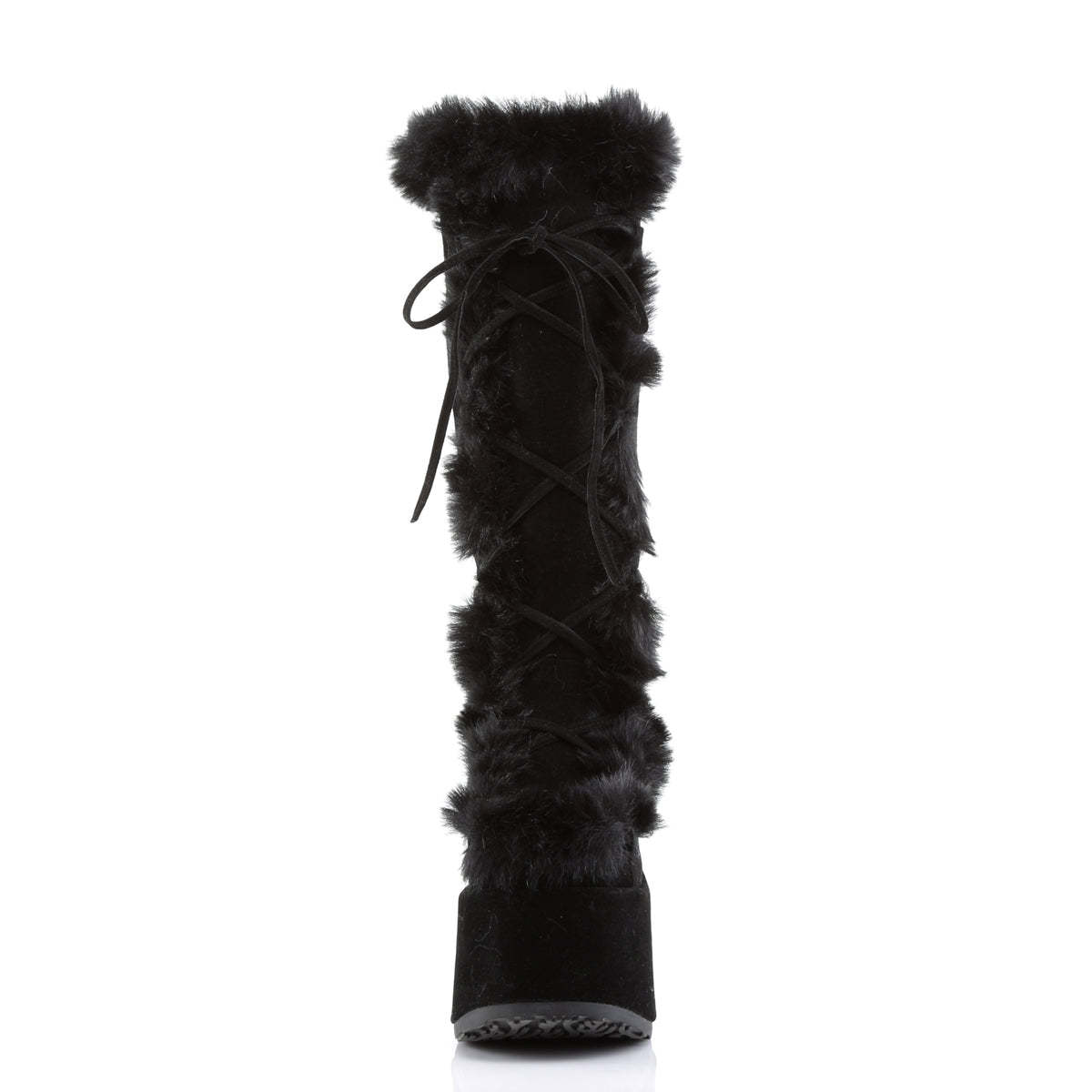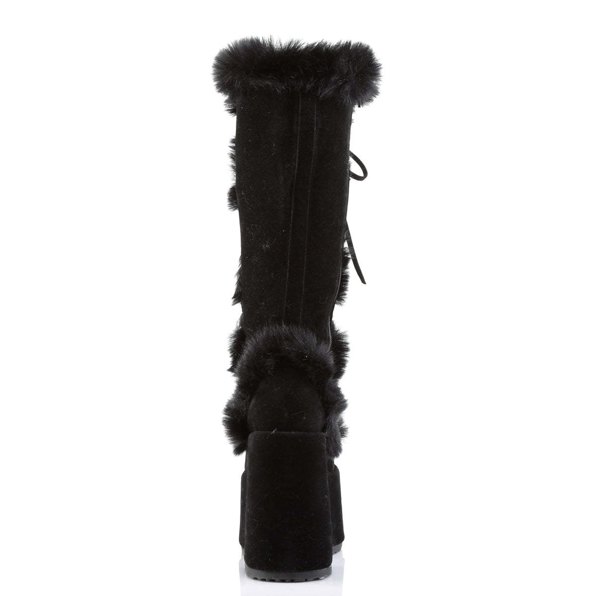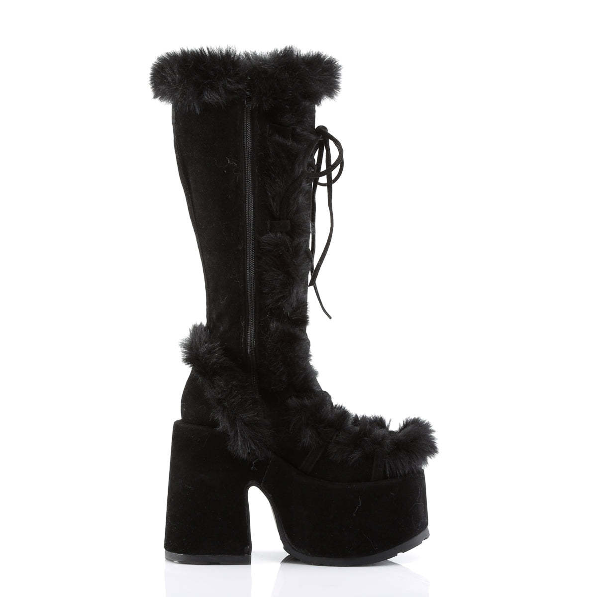 5" (12.7cm) Platform Goth Punk Gogo Faux Fur Lining and Upper Detail Knee Boot, Full Inner Side Zipper