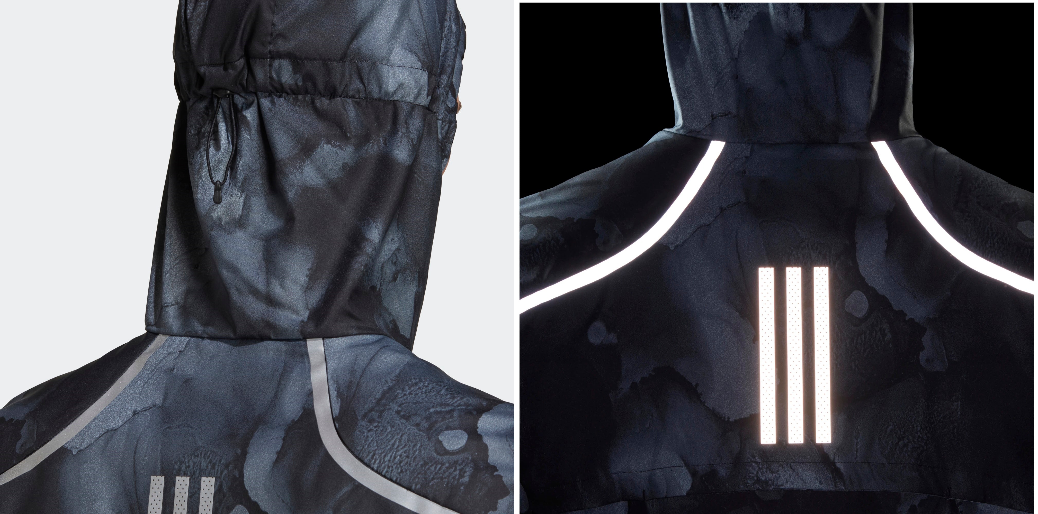 Every running season has its perks. Getting the chance to wear this adidas running jacket on cool, drizzly days is one of them. Zip in and own the experience with a bright, colorful graphic that stands out in the city or on the course. Cut for natural movement and finished with a water-repellent coating, it keeps you comfortable no matter what the weather is up to.