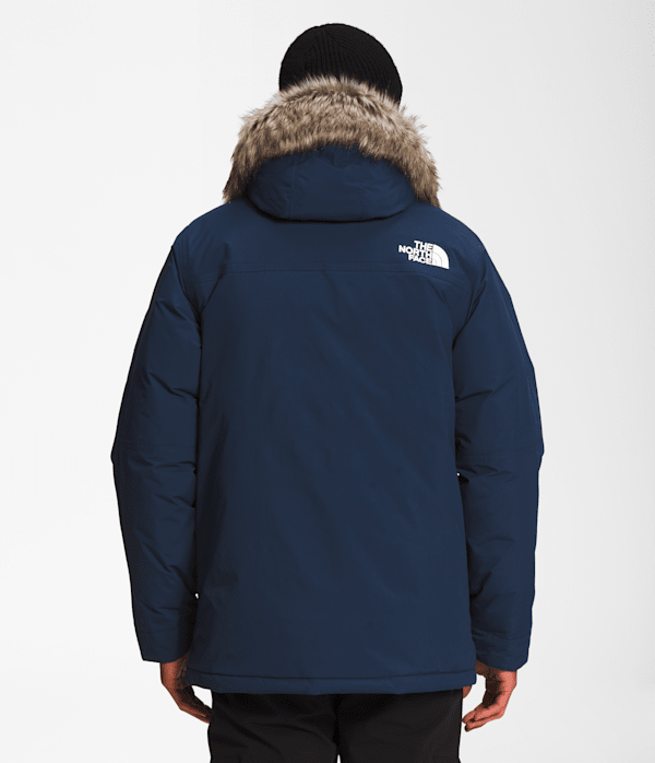 The McMurdo Parka, our longest men's coat, has a long list of must-have features. It is windproof, waterproof, breathable, and insulated with 600-fill recycled down.