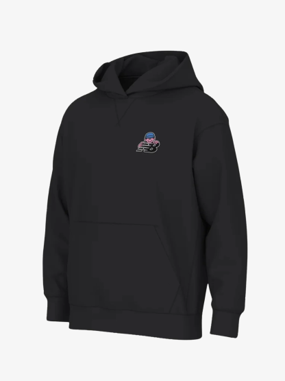 The Face Oka Character Hoodie in Black by New Balance is an oversized and versatile hoodie that features a unique logo on the front and back.
