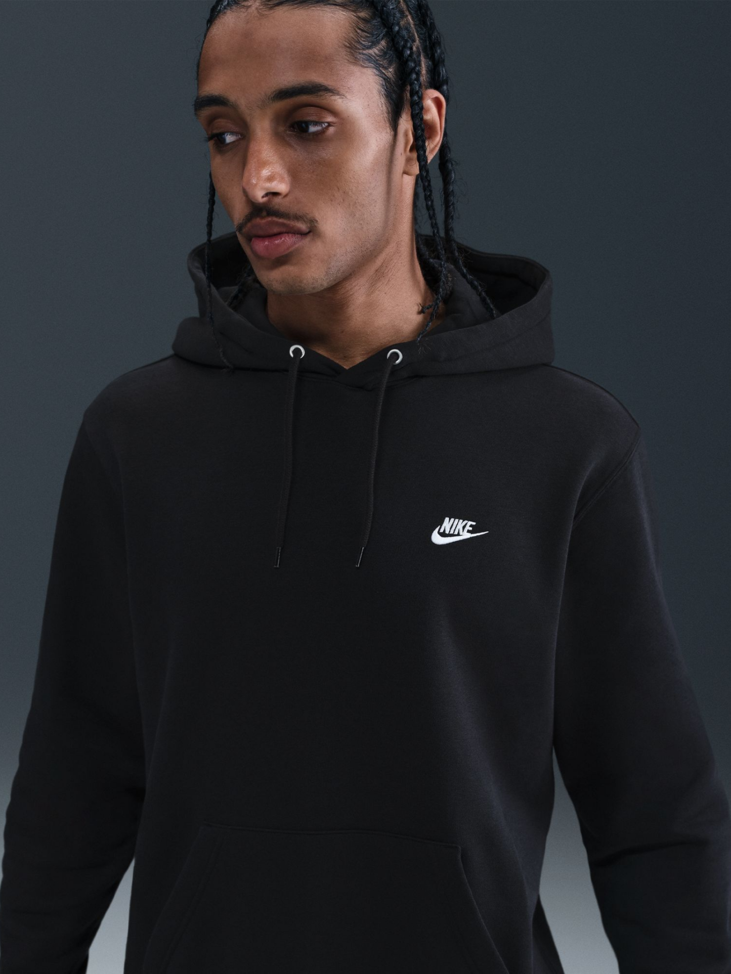 Combining clean lines with cosy fleece, the Nike Club Pullover Fleece Hoodie a soft brushed interior, double-layer hood, pouch pocket, and ribbed trims for all-day ease and structure.