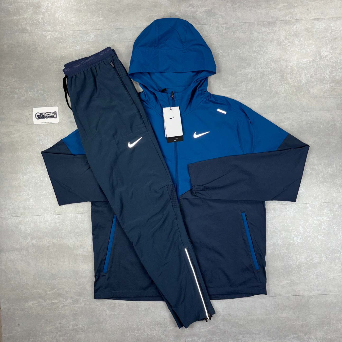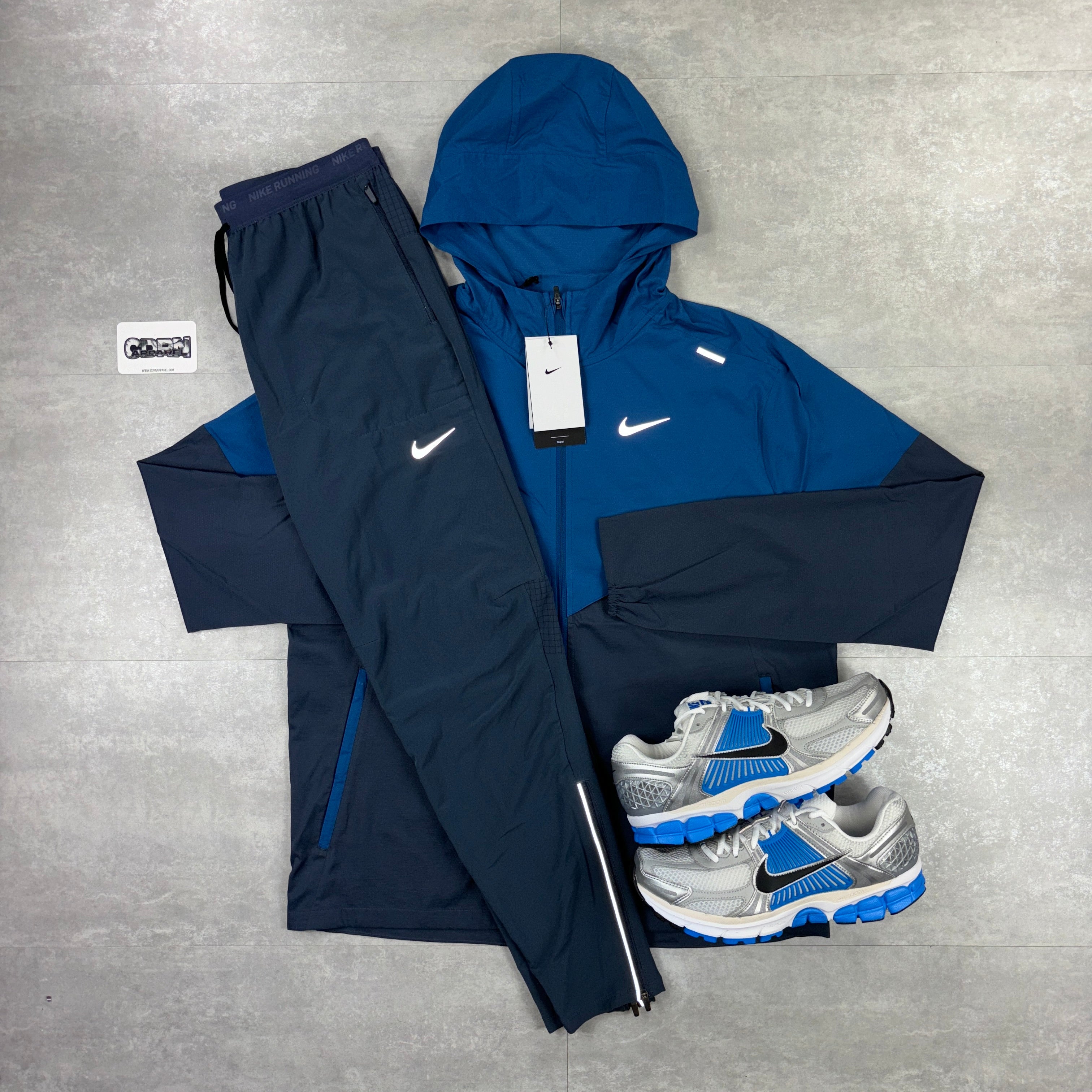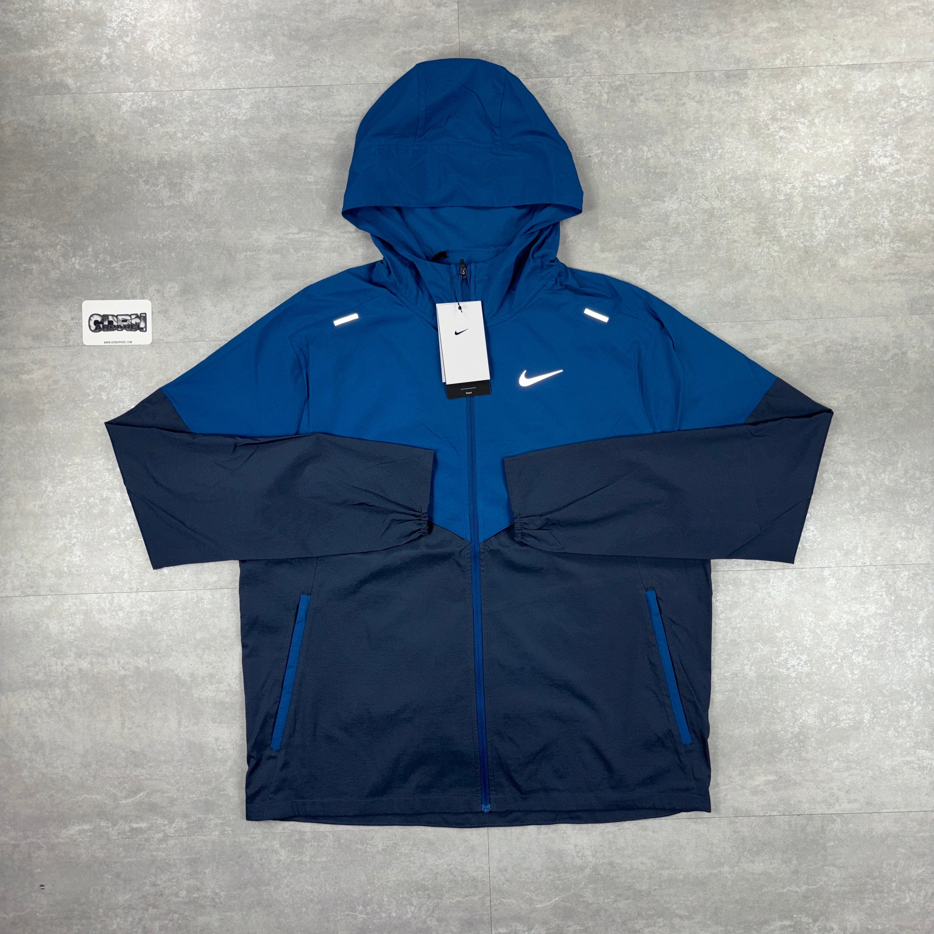 Here we have the Thunder Blue Nike UV windbreaker. The iconic Windrunner jacket is ready for the next chapter. Built for rainy days, this super-lightweight running jacket repels water, so staying dry is never a problem. What about sunny days? UV-blocking fabric provides protection in the areas covered by the jacket. Plus, it's packable and designed with plenty of airflow and breathability so you can keep cool on your next run—no matter what distance you go.