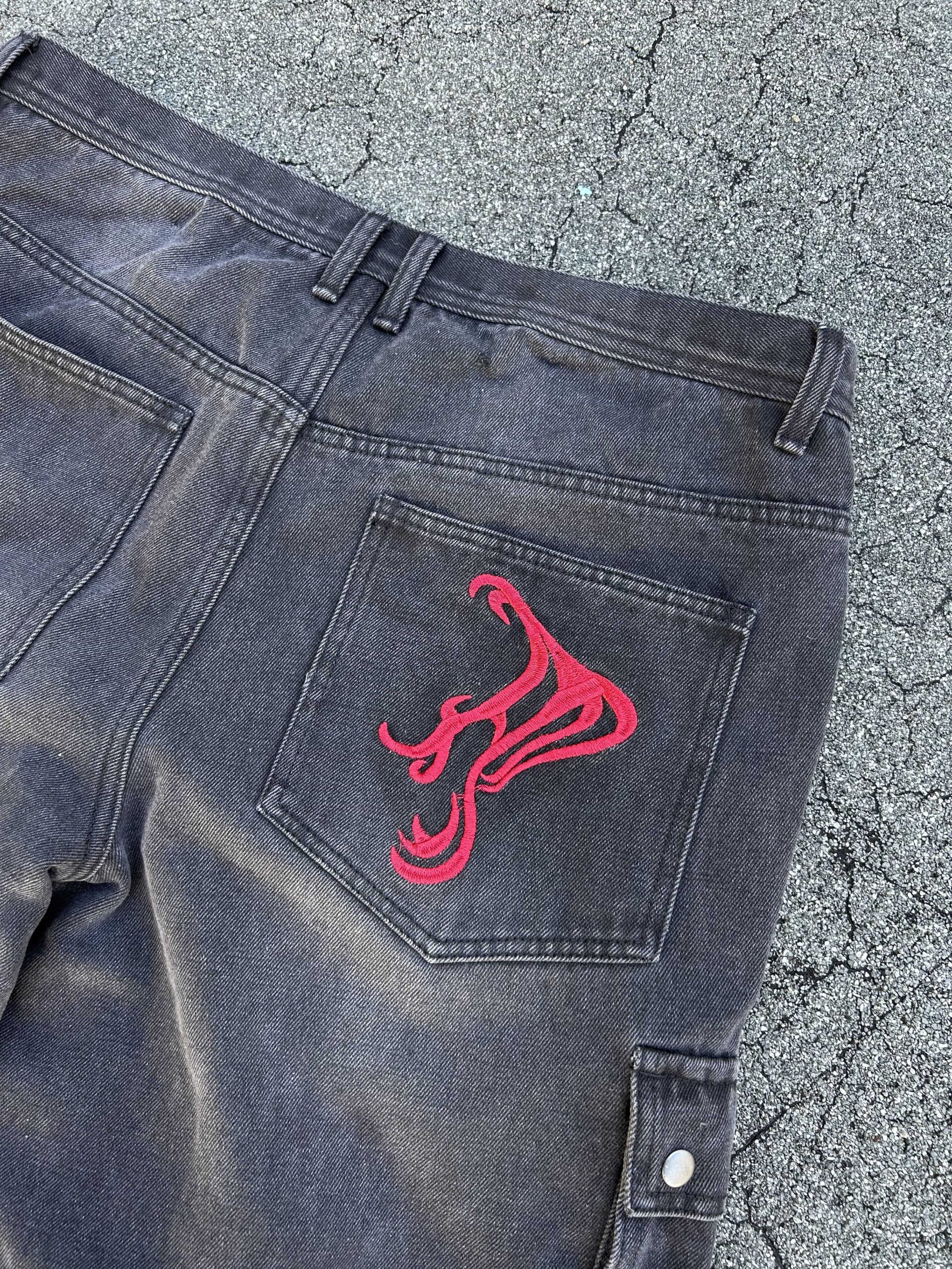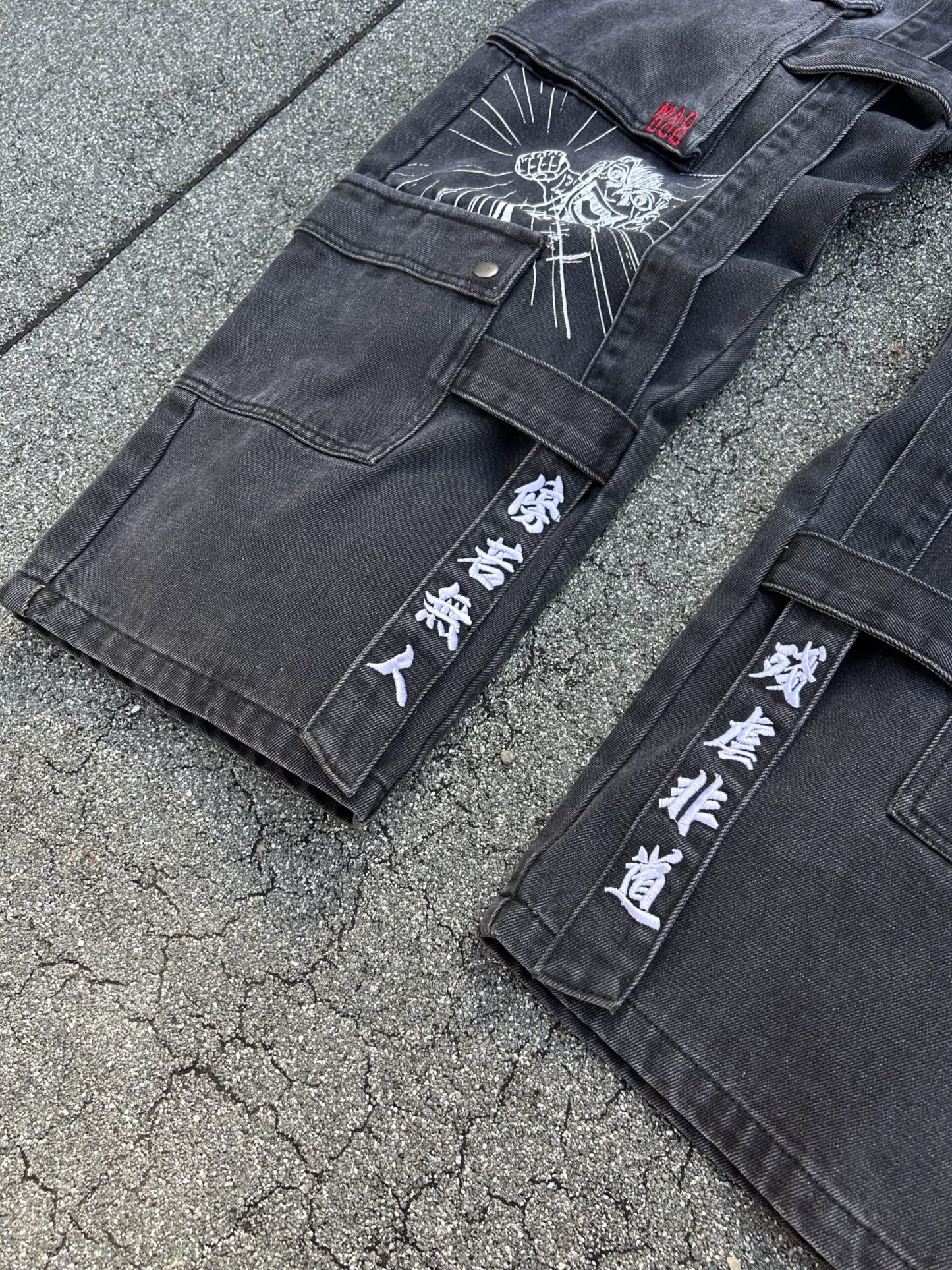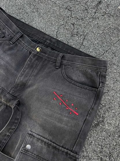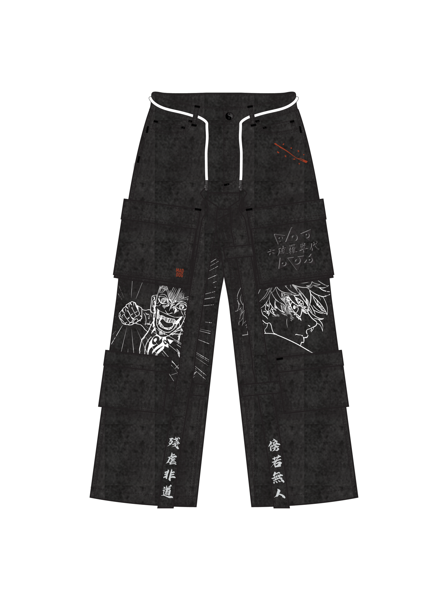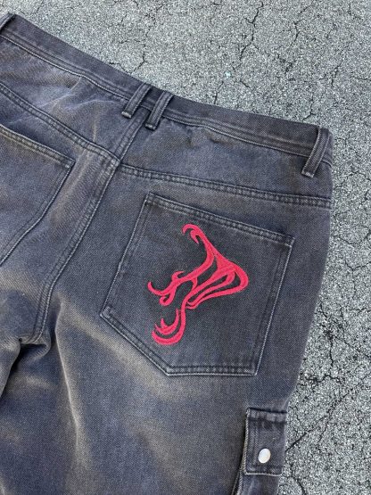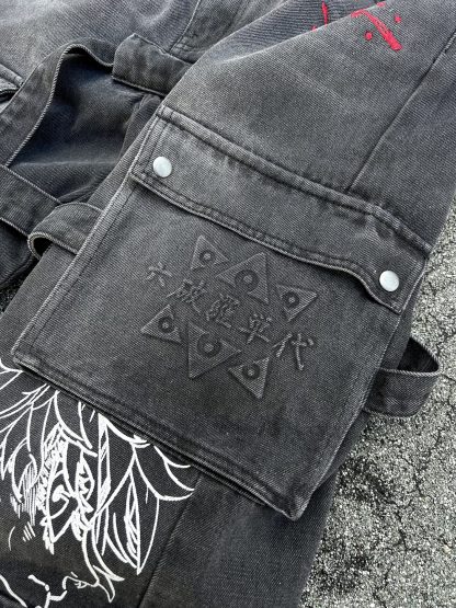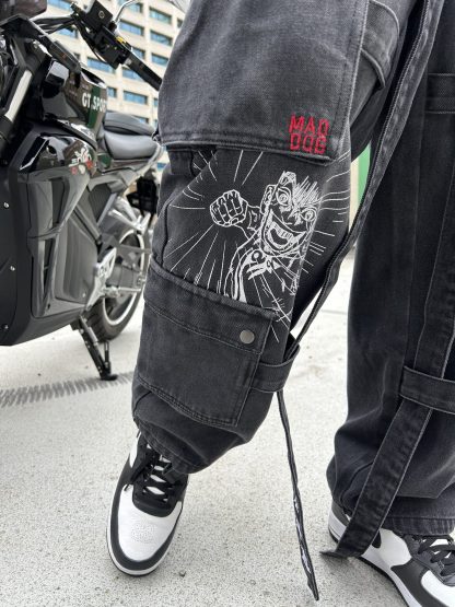 These pants are made of High-Quality Heavyweight Brushed Denim with screen-printed , puff print and embroidery designs on the front and back. Very comfortable and warm. It will keep the color bright for a long time.