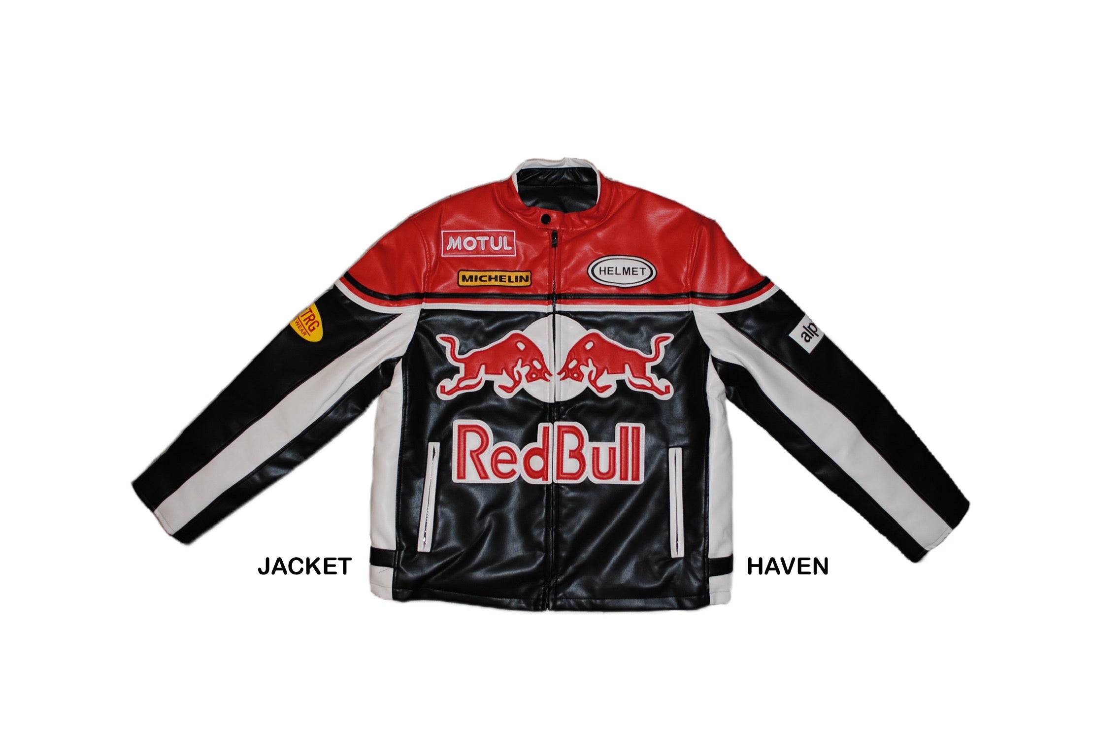 Feel the rush of the track in everyday life with Red Bull Overdrive. Crafted from premium black, red, and white leather, this jacket balances striking aesthetics with lasting comfort and durability. Thoughtfully embroidered brand details reflect the daring energy of Red Bull, while the sleek silhouette transitions seamlessly from streetwear to a night out with friends.