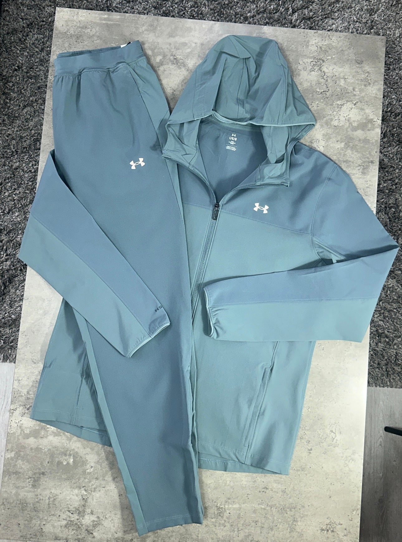 The Under Armour Velocitti Pro Tracksuit in Jasper Blue combines advanced lightweight materials with weather-resistant technology. Crafted from light-stretch woven fabric, it offers flexibility and comfort for dynamic movement. UA Storm technology ensures breathability while repelling water, keeping you protected in variable conditions. Strategic front and back vents enhance airflow to regulate temperature effectively. The pants feature an elastic waistband with drawcord for a secure fit, plus ankle zips for effortless on and off. This tracksuit provides expert-level performance and comfort tailored for active wear in diverse weather.