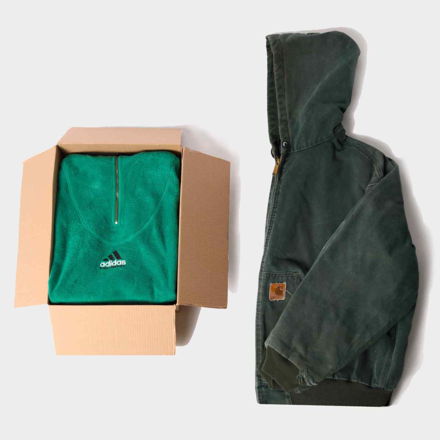 EACH BOX CONTAINS A CURATED ASSORTMENT OF VARIOUS VINTAGE PIECES FROM THE 80’S, 90’S AND 00’S. SPORTSWEAR, WORKWEAR, DESIGNER AND LOADS MORE. JUST PICK YOUR SIZES AND WE’LL DO THE REST.